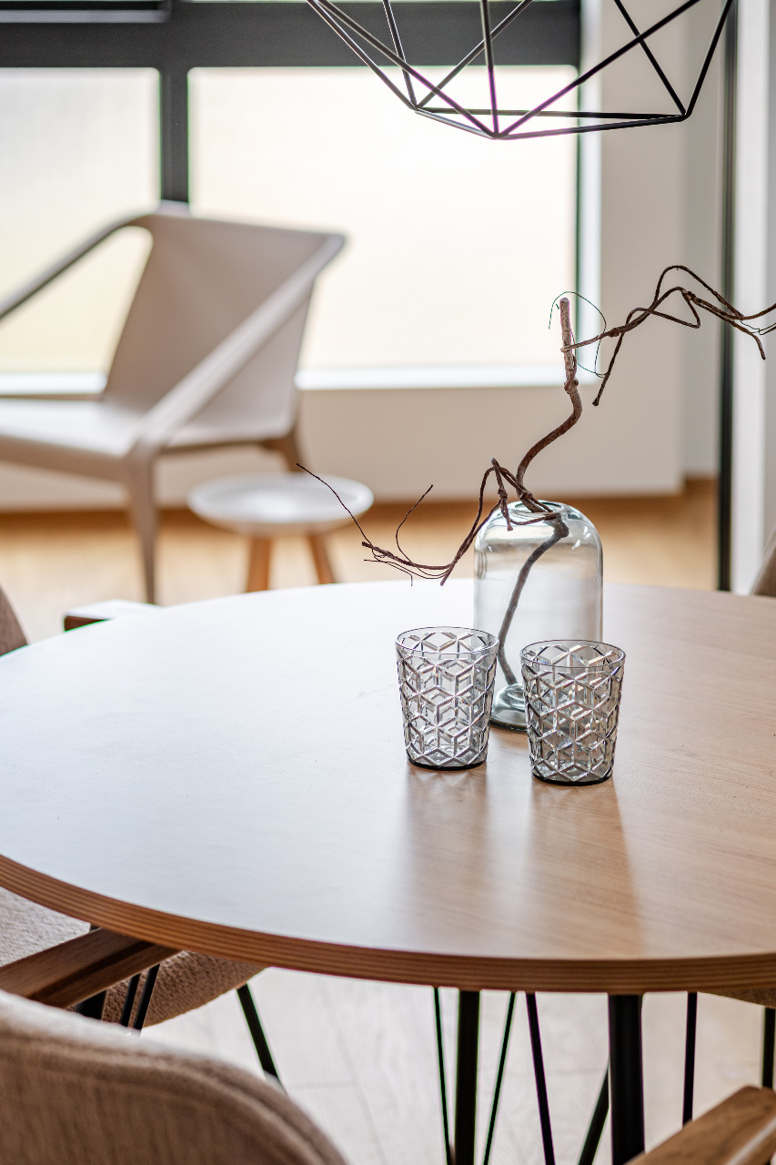 家族が集うセンターポジション。ペンダント照明がアクセントになり、食卓を“ちょっと特別”な場所に。