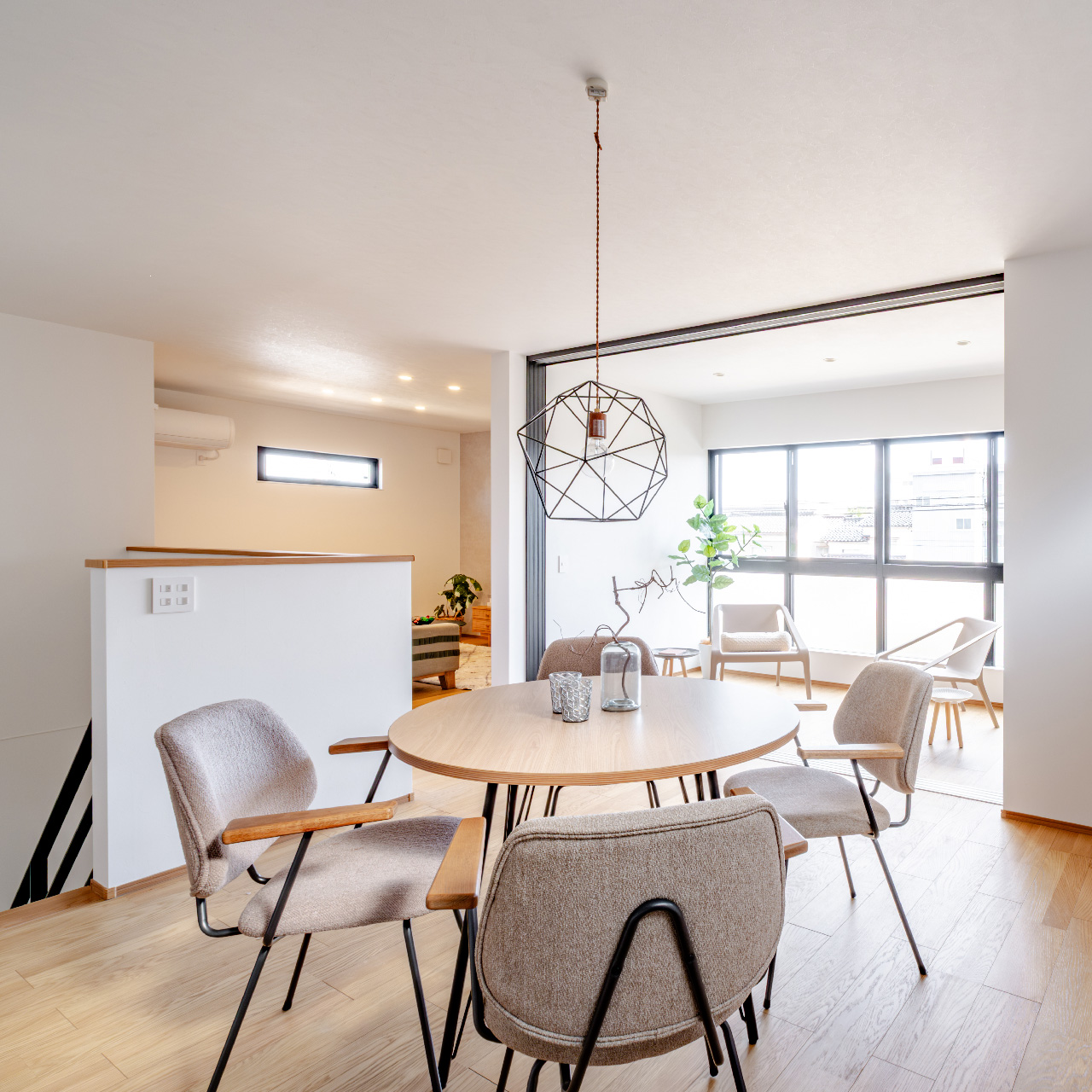 テラスから降り注ぐ、明るい光はダイニングまで広がり、毎日の食卓を彩りを与えてくれる。