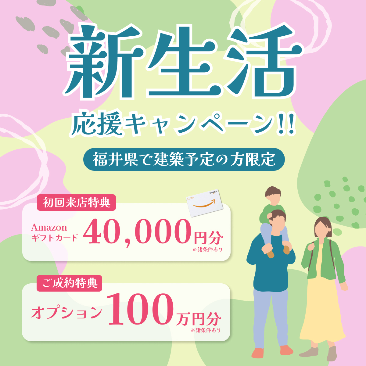 福井で住宅をご検討中の方に、来店特典として「Amazonギフト券最大4万円分」をプレゼント!