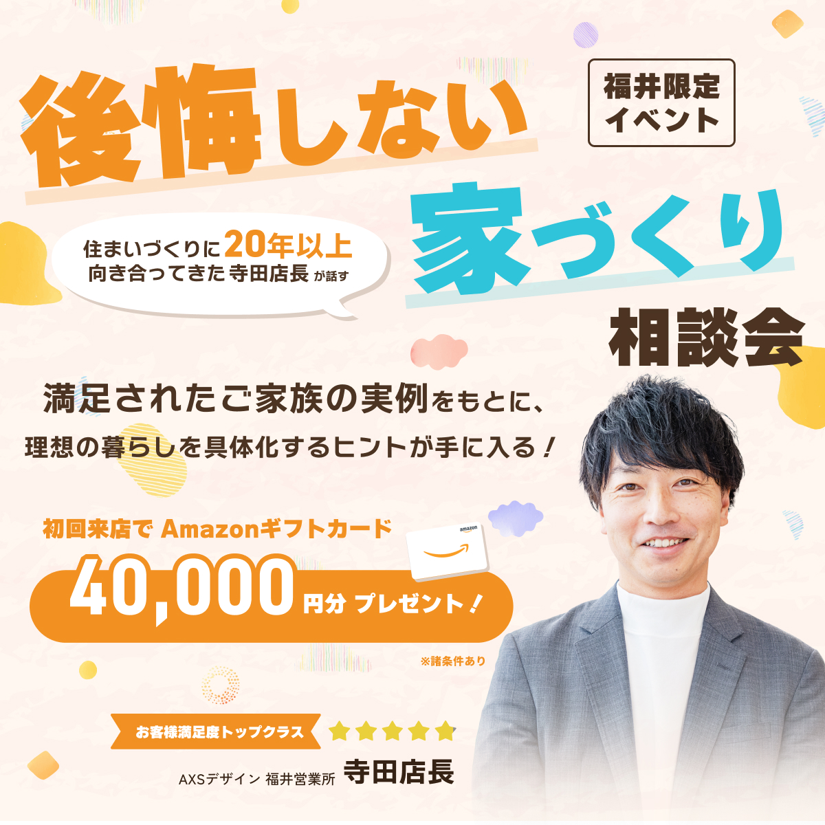 20年にわたり多くのお客様の住まいづくりをサポートしてきた店長が、「後悔しないための考え方」や「無理のない予算計画の立て方」を分かりやすく解説します。