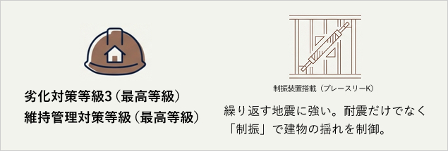 夏は涼しく、冬は暖かい快適な室内環境を実現し、繰り返す地震にも配慮したつくりでご家族を守ります。