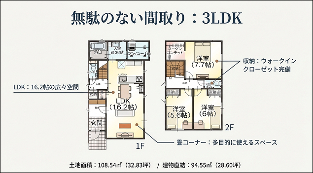 価格を抑えながらも、毎日を気持ちよく過ごせるあたたかさと、長く安心して暮らせる丈夫さをきちんと備えた住まいです。