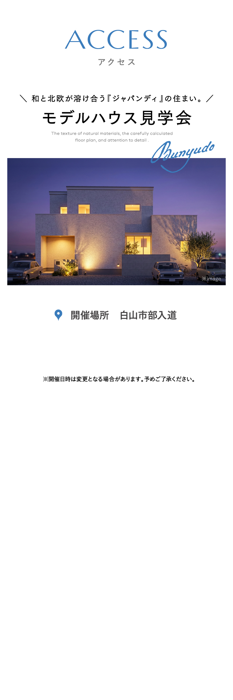 白山市部入道モデルハウス見学会 日程 2026年4月25日~ 時間 10:00〜18:00 主催 (株)AXSデザイン 開催期間 2026年4月25日~ 時間 10:00〜18:00 主催 (株)AXSデザイン 開催期間 2026年4月25日~ 時間 10:00〜18:00