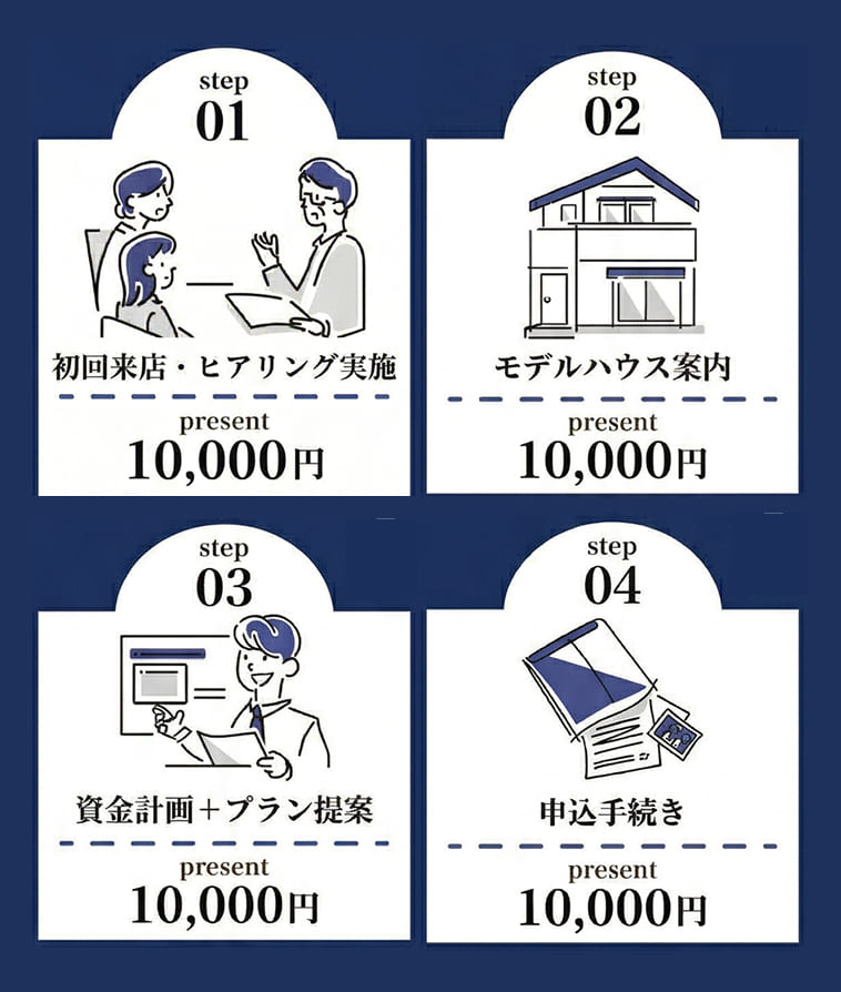 - 過去に内見会などのイベント会場に来場した方、不動産会社や紹介カウンターなどを経由して当社を紹介された方は対象外となります。